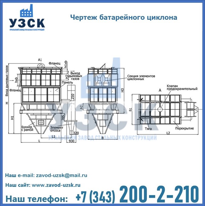 При помощи батарейных циклонов удается улавливать 85 и более % золы из дымовых газов, благодаря чему удается предотвратить загрязнение окружающей среды возле котельных установок. Таким образом, данное оборудование можно считать максимально производительным и эффективным. Применение золоуловителей батарейного типа рекомендуется для котельных, сжигающих твердые золосодержащие вещества, при условии, что территориально такие объекты расположены в черте города и зеленых зонах. Кроме того, батарейные циклоны хорошо подходят для улавливания промышленной пыли и золы на разнообразных технологических установках. Завод «УЗСК» в Джалал-абаде предлагает большой выбор циклонов и прочих устройств, полностью укомплектованных и готовых к эксплуатации. Мы гарантируем соответствие оборудования всем требованиям ГОСТ и ТУ, износостойкость и высокую производительность предлагаемого оборудования.