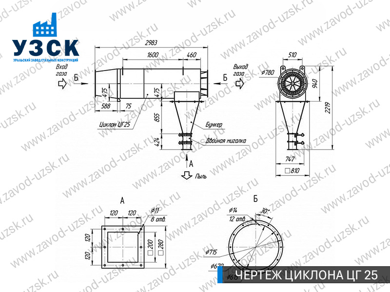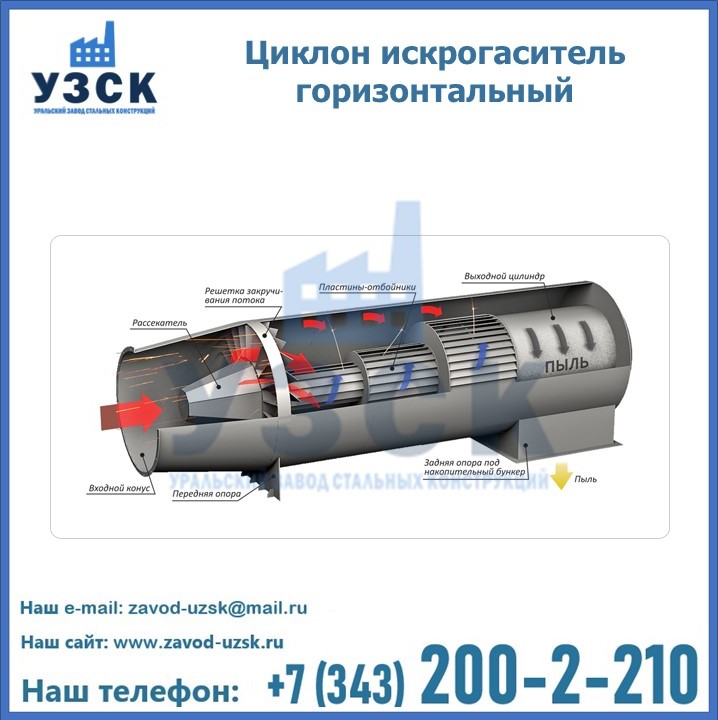 Монтаж циклона-искрогасителя ЦГ должен осуществляться непосредственно к горизонтальному вентиляционному каналу на входе в систему фильтрации и аспирации. Заказать изготовление по индивидуальному техзаданию или купить готовый циклон-искрогаситель ЦГ на заводе УЗСК в Джалал-абаде можно, оставив заявку прямо на сайте или позвонив по указанному телефону, уточнив все детали касательно продажи оборудования.