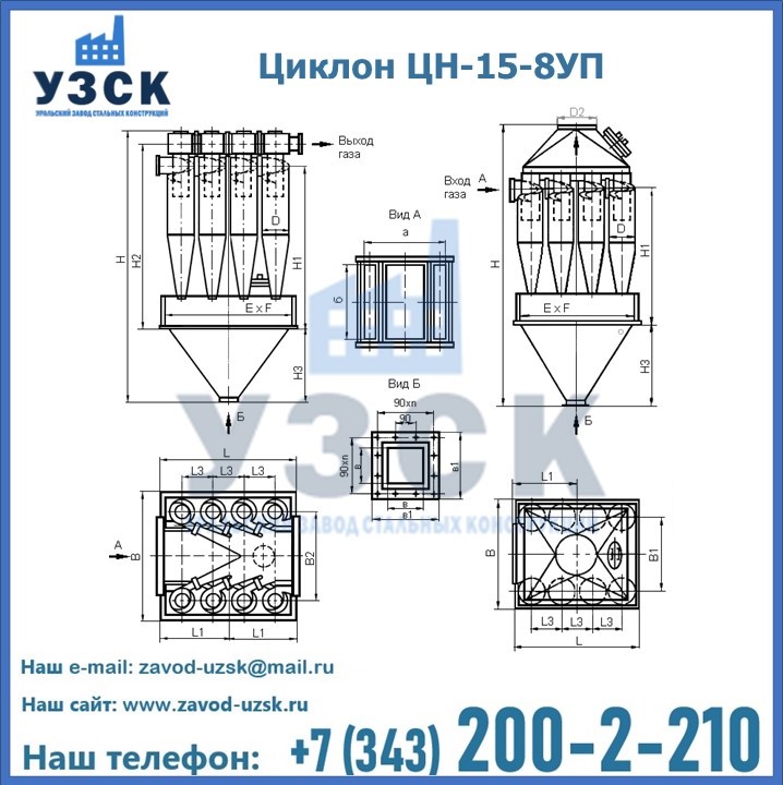 Завод «УЗСК» в Джалал-абаде предлагает большой выбор циклонов ЦН-15-500×8УП и прочих устройств, полностью укомплектованных и готовых к эксплуатации. Мы гарантируем соответствие оборудования всем требованиям ГОСТ и ТУ, износостойкость и высокую производительность предлагаемого оборудования. Уральский Завод Стальных Конструкций изготавливает и продает надежное, эффективное и производительное оборудование, имеющее длительную гарантию и большой эксплуатационный ресурс. Если требуется изготовить циклон нестандартных размеров, то такой вариант выполнения заказа тоже предусмотрен, так как предприятие имеет собственные производственные площади и надежных поставщиков. На все поставляемое или производимое оборудование имеются чертежи и прочая техническая документация. Заказать и купить циклоны или прочее оборудование высокого качества и по доступной цене можно через наш сайт или по указанному в разделе «Контакты» телефону.
