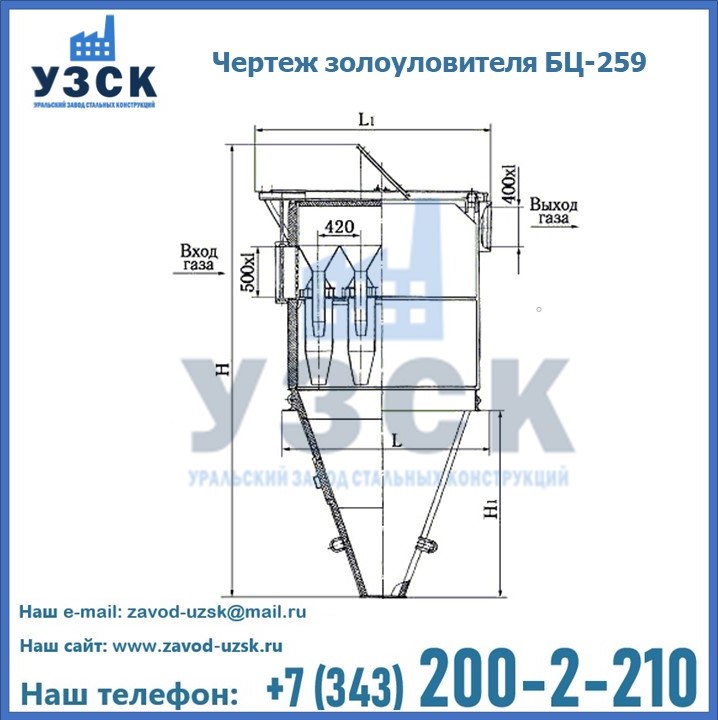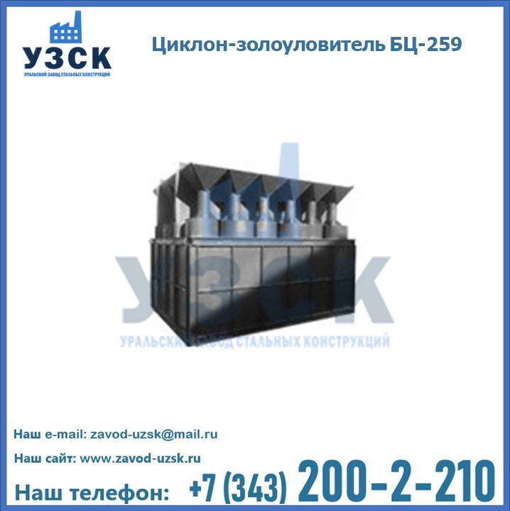Если вы планируете купить то или иное оборудование, например, циклоны-золоуловители БЦ-259, то рекомендуем заказать данный товар на сайте УЗСК. Мы производим и реализуем продукцию высокого качества по приемлемой цене. Эксперты Уральского Завода Стальных Конструкций в Джалал-абаде проконсультируют вас по всем вопросам, помогут сделать выбор и оформить заказ без лишних временных затрат. Мы гарантируем соответствие нашей продукции всем требованиям ГОСТ и ТУ, а также износостойкость и высокую производительность предлагаемого оборудования. Если требуется изготовить циклон нестандартных размеров, то такой вариант выполнения заказа тоже предусмотрен, так как предприятие имеет собственные производственные площади и надежных поставщиков. На все поставляемое или производимое оборудование имеются чертежи и прочая техническая документация. Заказать и купить циклоны или прочее оборудование высокого качества и по доступной цене можно через наш сайт или по указанному в разделе «Контакты» телефону.