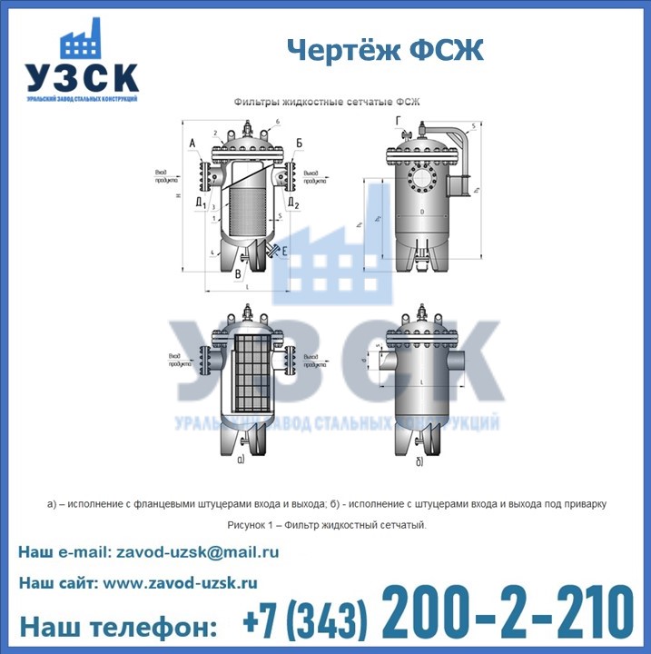 Очистку перекачиваемых жидкостей на предприятиях нефтяной, пищевой, горнорудной, фармацевтической и других отраслей промышленности эффективно выполнять с помощью жидкостного сетчатого фильтра — емкостное оборудование цилиндрической формы со съемной крышкой и элементом фильтрации внутри. Оснащенные им всасывающие линии насосных станций и установок защищены от проникновения твердых частиц в функциональные узлы гидравлической системы. Оборудование служит для перекачивания токсичных, агрессивных и иных эмульсий, суспензий, жидкостей. Купить фильтр сетчатый жидкостный ФСЖ в Джалал-абаде с гарантией производителя предлагает «Уральский завод стальных конструкций». Мы выполняем проектирование и изготовление ФСЖ по индивидуальным требованиям (климатическая зона, транспортируемая жидкость).