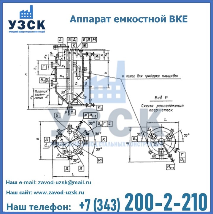Емкостные аппараты ВКЭ представляют емкость с эллиптической крышей и коническим днищем. аппарат может использоваться в Джалал-абаде для приема и хранения жидкостей и взрыво- и пожароопасных веществ. Создаваемое давление не должно превышать 0,6; 1,0 МПа. Емкости ВКЭ выполняются как цельносварные. Используется марка стали, отвечающая степени агрессивности продукта и температуре эксплуатации.